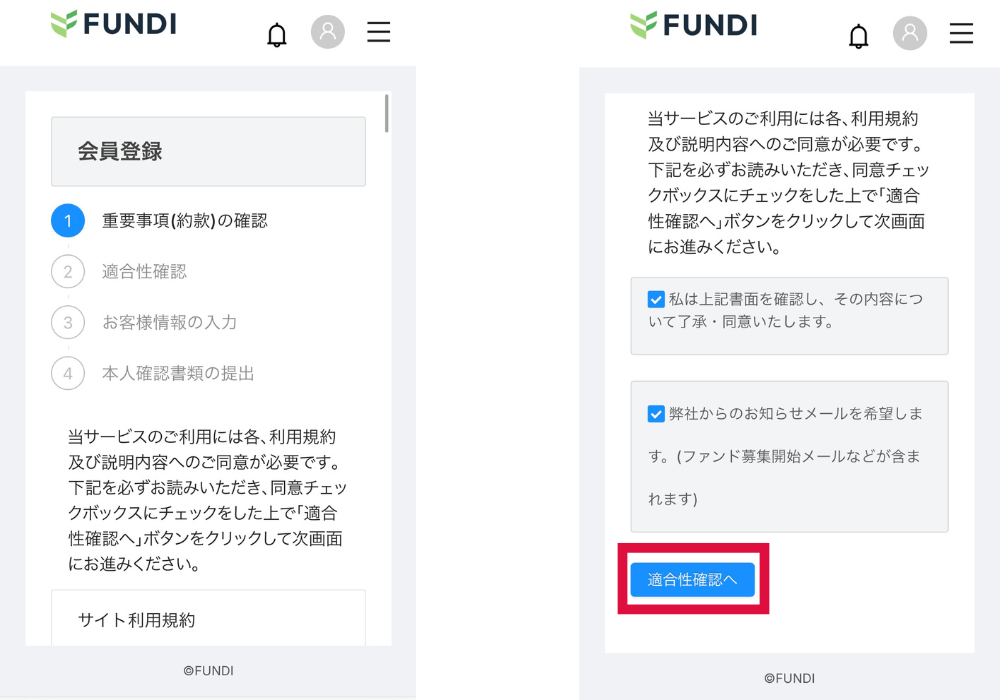 内容を確認したら、2つのチェックボックスにチェックを入れて、「適正確認へ」をタップ!