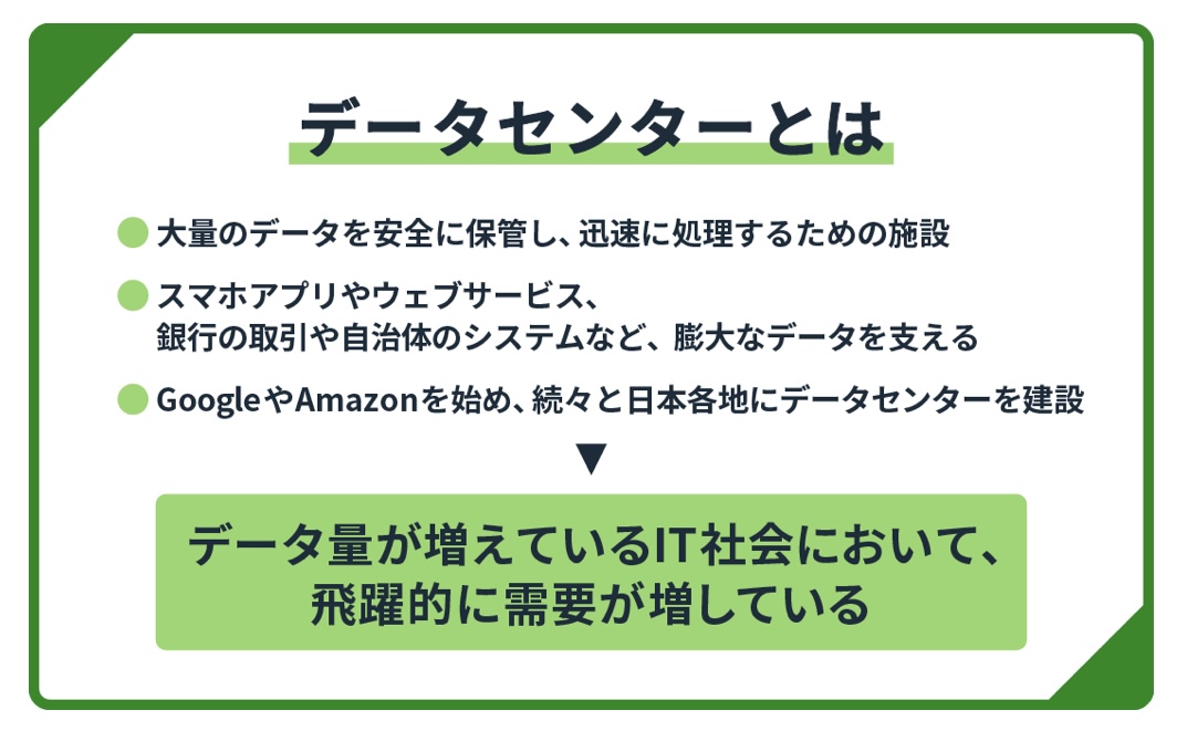 実はFUNDIのファンドは、よくある「マンション再生」だけではなく、 データセンターや蓄電池施設といった、ちょっと先進的な不動産にも投資できるのが特徴。