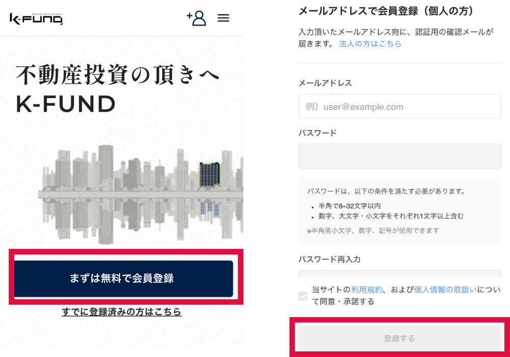 まずは、K-FUNDの会員登録の方法を紹介するよ♪