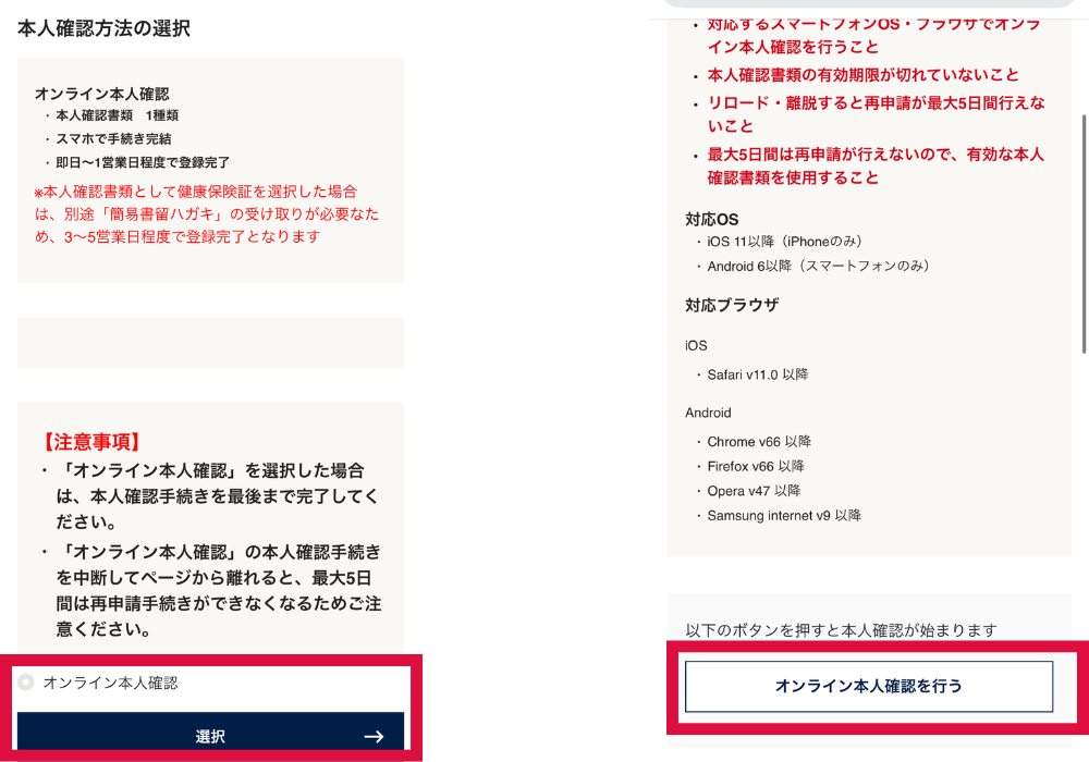 本人確認の途中で画面を閉じちゃったり、「戻る」ボタンを押したりすると、セキュリティのために5日間再申請できなくなっちゃうことがあるよ💦