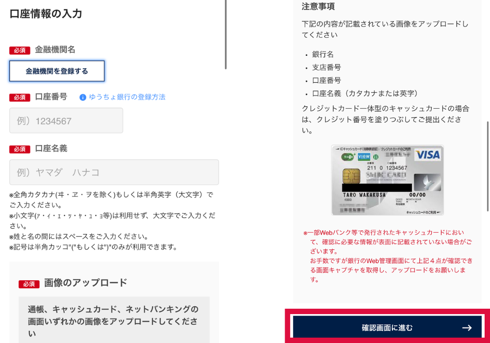 配当を振り込む銀行口座を入力してね♪