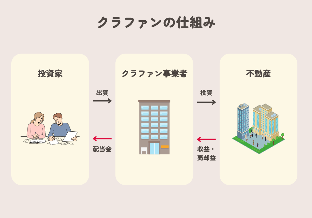 「みらファン」は、みんなからお金を集めて、プロが代わりに不動産を買って運用する「不動産クラウドファンディング」という仕組み。