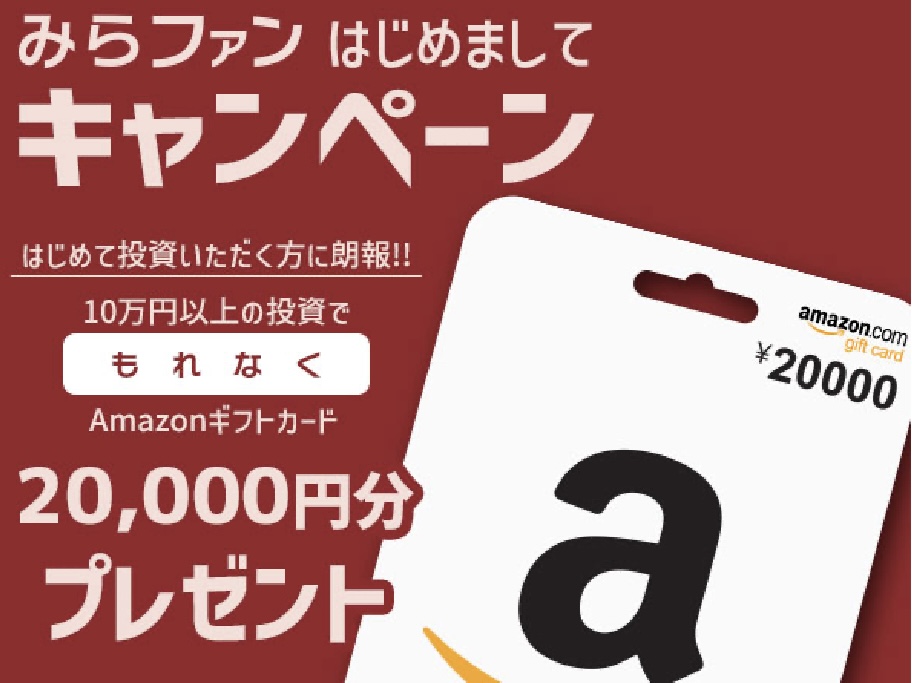 今回の「みらファン」のキャンペーンは、10万円投資すると全員に2万円のアマギフがもらえるというとんでもない内容。